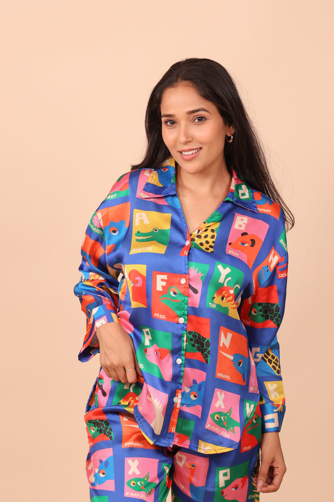 Get ready to feel like a million bucks (without spending it) in our satin touch oversized shirt and pajama set. This set features a luxurious satin finish that's smoother than a well-rehearsed pickup line. The oversized shirt exudes effortless elegance, making you look like you woke up like this (flawless). And the matching bottoms? They're so cozy, you'll swear they were woven with a hug. This set promises a luxurious experience that's as comfy as it is chic.